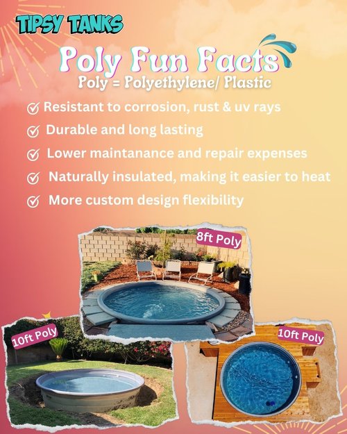Looking for the perfect combination of durability and depth (4'“ deeper than a galvanized that is), we have you covered. Our 100% virgin polyethylene plastic 10ft poly tanks are built super tough, resistant to chemicals, UV rays, and will never rust, making it a forever pool.